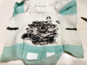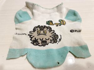 本当は捨てたかったんだけど、本人の思い入れが強すぎてこのポケモンの靴下が捨てられなくて。マスコットにしたら良いかも…とボソッと言ったらそうしたいって。